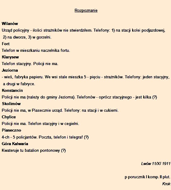 Jest to praca wakacyjna Kroka-Paszkowskiego z 1911 r. Każdy słuchacz szkoły ZWC musiał w trakcie wakacji wykonać różne zadania, m.in. dokonać rozpoznania terenu na którym przebywał.