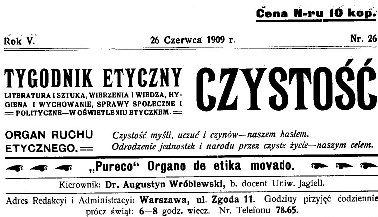 [5]”Czystość. Tygodnik etyczny” nr 26 z 26 czerwca 1909 r., A. Wr[óblewski], Przytułki dla upadłych kobiet, s.414-415.