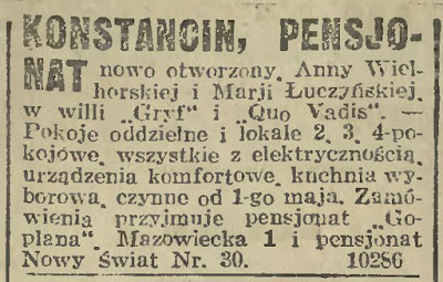 Tym razem pojawiają się ogłoszenia także z Konstancina. Trzeba zaznaczyć, że ogłoszenia umieszczane w niedzielnych wydaniach gazet miały większy zasięg oddziaływania.