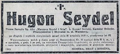 Po pierwsze nazwisko wskazuje, że jeżeli pochowany jest w Warszawie to zapewne na Cmentarzu Ewangelicko-Augsburskim. Sprawdzamy. Rzeczywiście Seydlowie są tu pochowani.