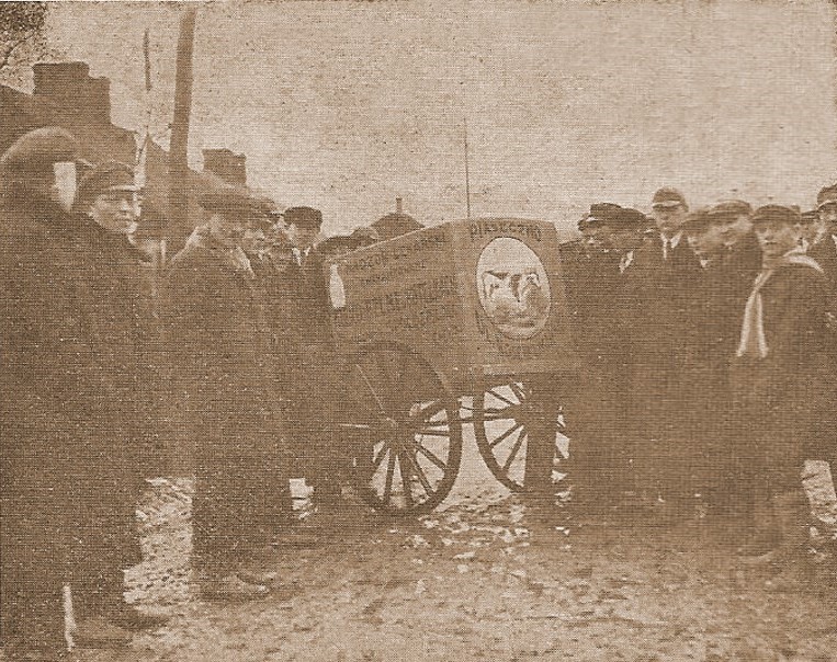 | Spółdzielcza mleczarnia w Piasecznie, dostarczająca mleko „butelkowane” do Warszawy rozpoczęła sprzedaż mleka również w Piasecznie. Ręczny wózek, w którym butelki z mlekiem rozwożone są po Piasecznie |