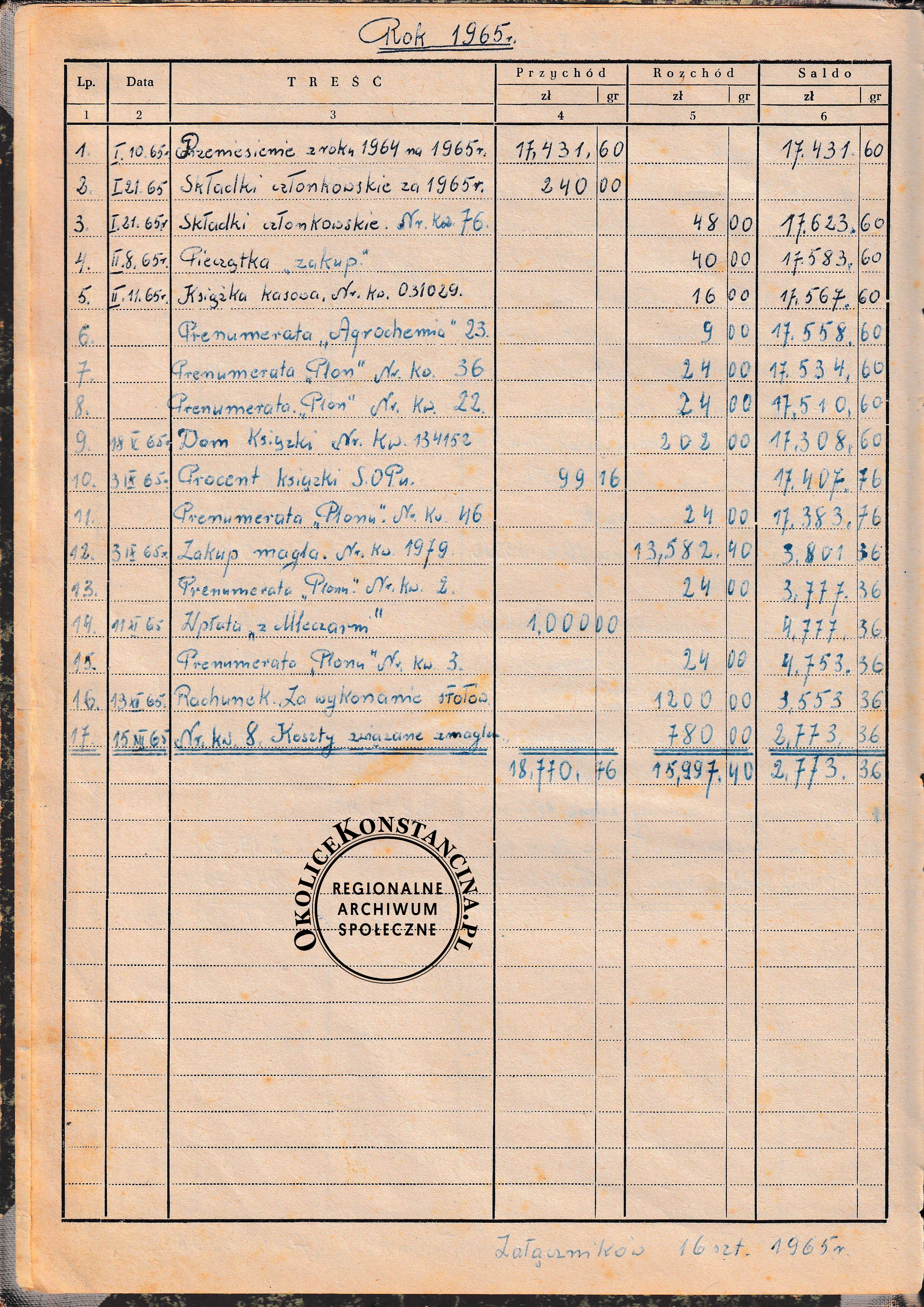 Księga kasowa KGW w Gassach z lat 1964-91. Zb. M. Zarzyckiej.