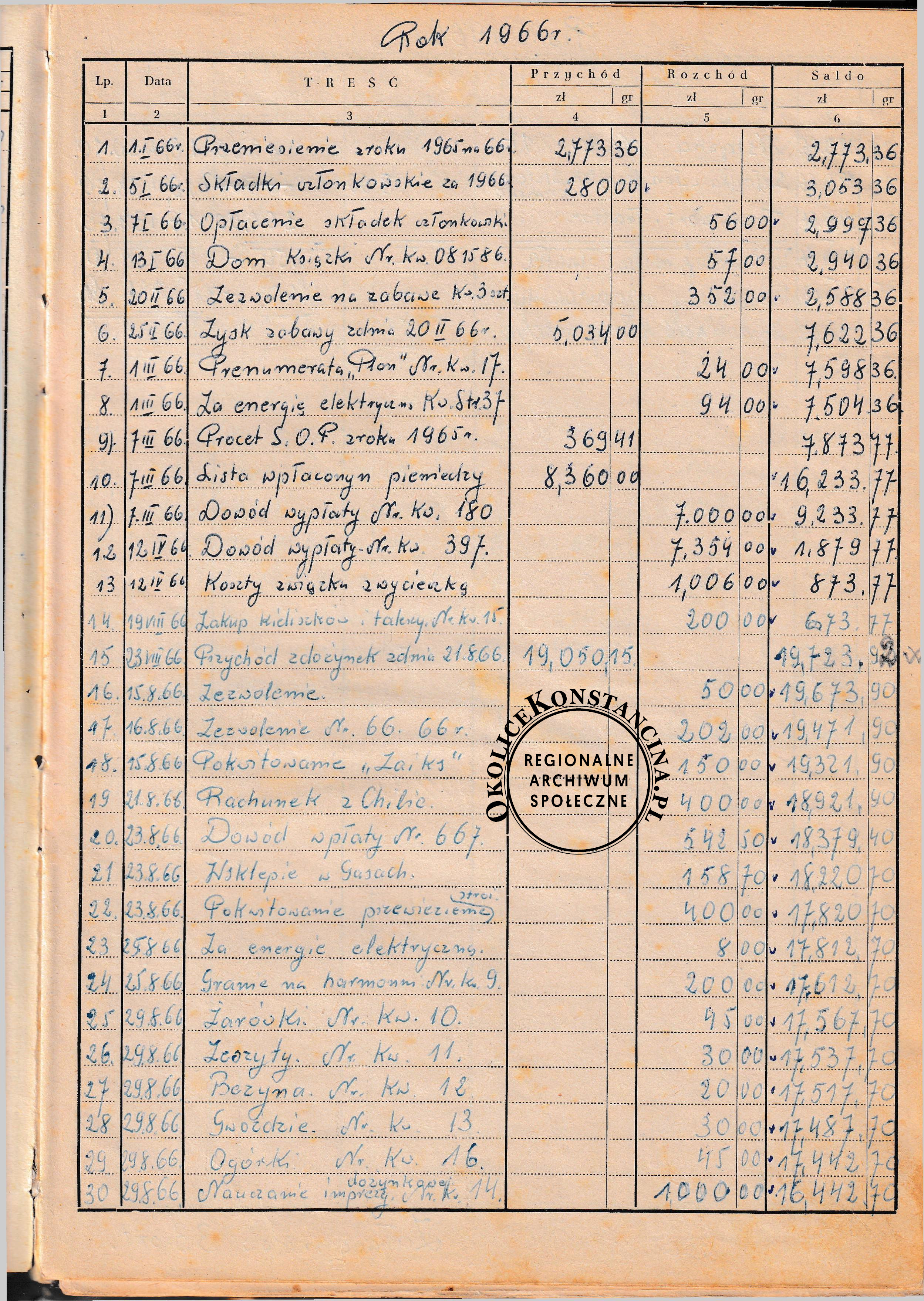 Księga kasowa Koła Gospodyń Wiejskich w Gassach zawierająca wpisy z lat 1964-1991 r. jest niezwykle ważnym dokumentem życia codziennego, nie tylko dokumentującym działalność KGW, ale również przemian społecznych w Polsce. Księgę prowadziła skarbniczka Koła. Przez wiele lat była nią, nieżyjąca już Stanisława Kanabus. Warto zapoznać się z dorocznymi wpisami dokumentującymi nie tylko wydatki na zwyczajowe imprezy, ale także działalność społeczną i kulturalną. Oryginał przechowywany jest przez przewodniczącą utworzonego w 2024 r. koła Grymle z Urzecza – Koło Gospodyń i Gospodarzy Wiejskich w Gassach. Skan księgi dostępny poniżej w formie galerii, lub do pobrania jako plik PDF.