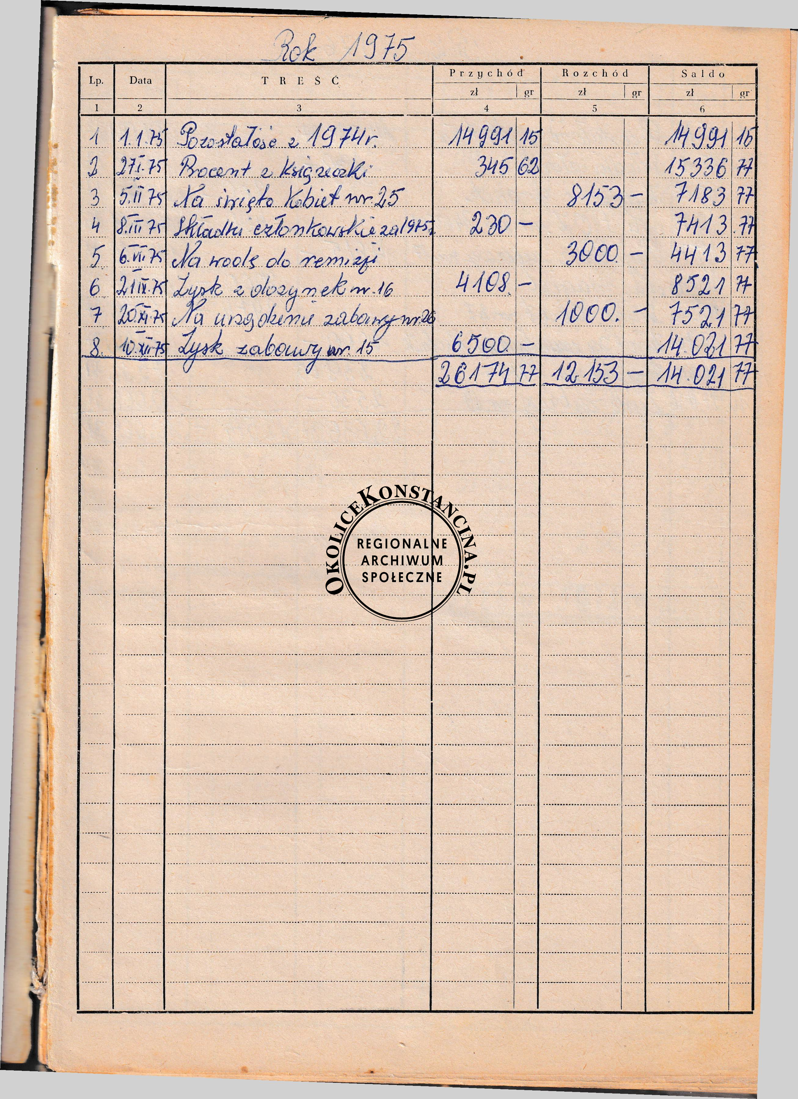 Księga kasowa KGW w Gassach z lat 1964-91. Zb. M. Zarzyckiej.