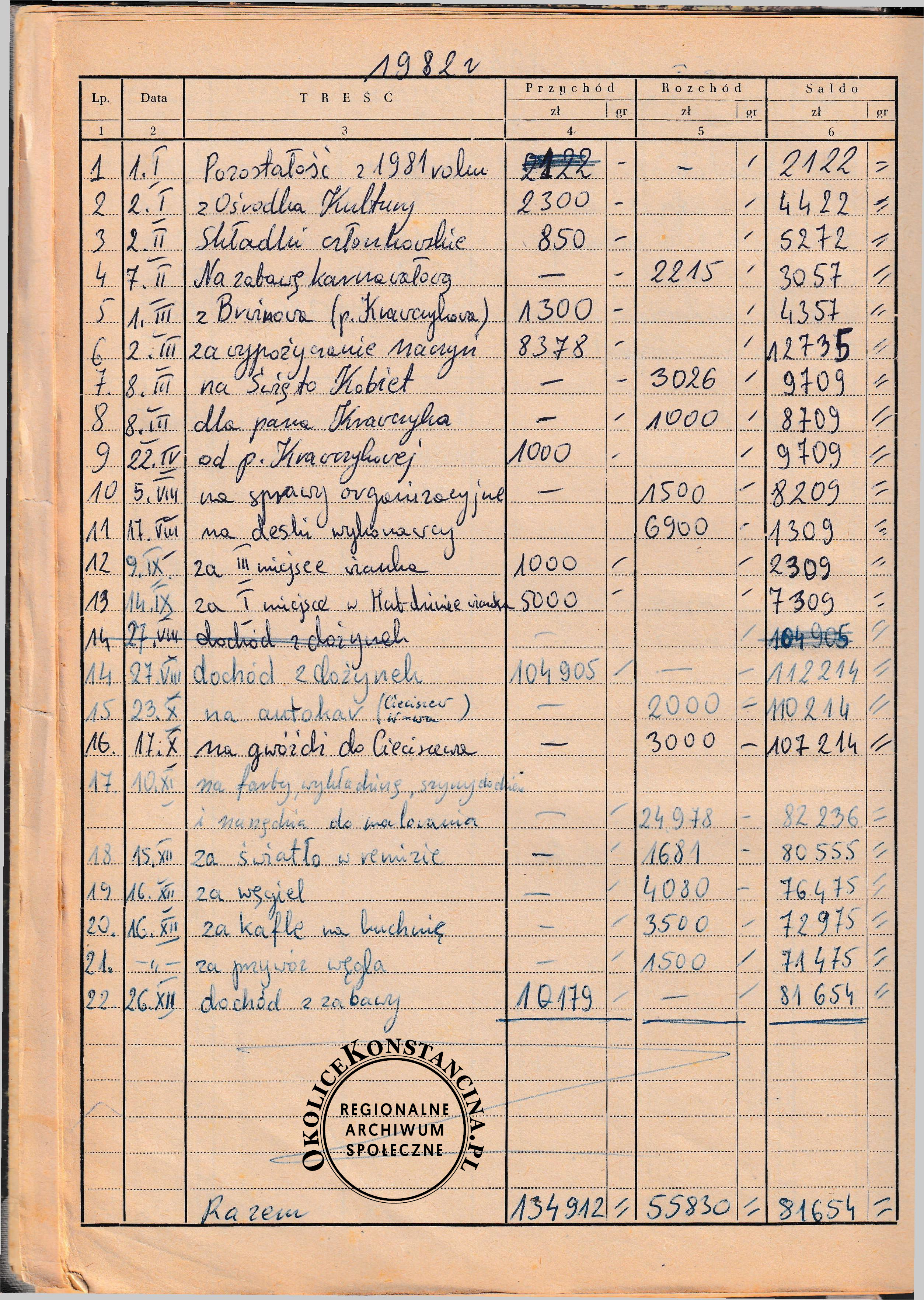 Księga kasowa Koła Gospodyń Wiejskich w Gassach zawierająca wpisy z lat 1964-1991 r. jest niezwykle ważnym dokumentem życia codziennego, nie tylko dokumentującym działalność KGW, ale również przemian społecznych w Polsce. Księgę prowadziła skarbniczka Koła. Przez wiele lat była nią, nieżyjąca już Stanisława Kanabus. Warto zapoznać się z dorocznymi wpisami dokumentującymi nie tylko wydatki na zwyczajowe imprezy, ale także działalność społeczną i kulturalną. Oryginał przechowywany jest przez przewodniczącą utworzonego w 2024 r. koła Grymle z Urzecza – Koło Gospodyń i Gospodarzy Wiejskich w Gassach. Skan księgi dostępny poniżej w formie galerii, lub do pobrania jako plik PDF.