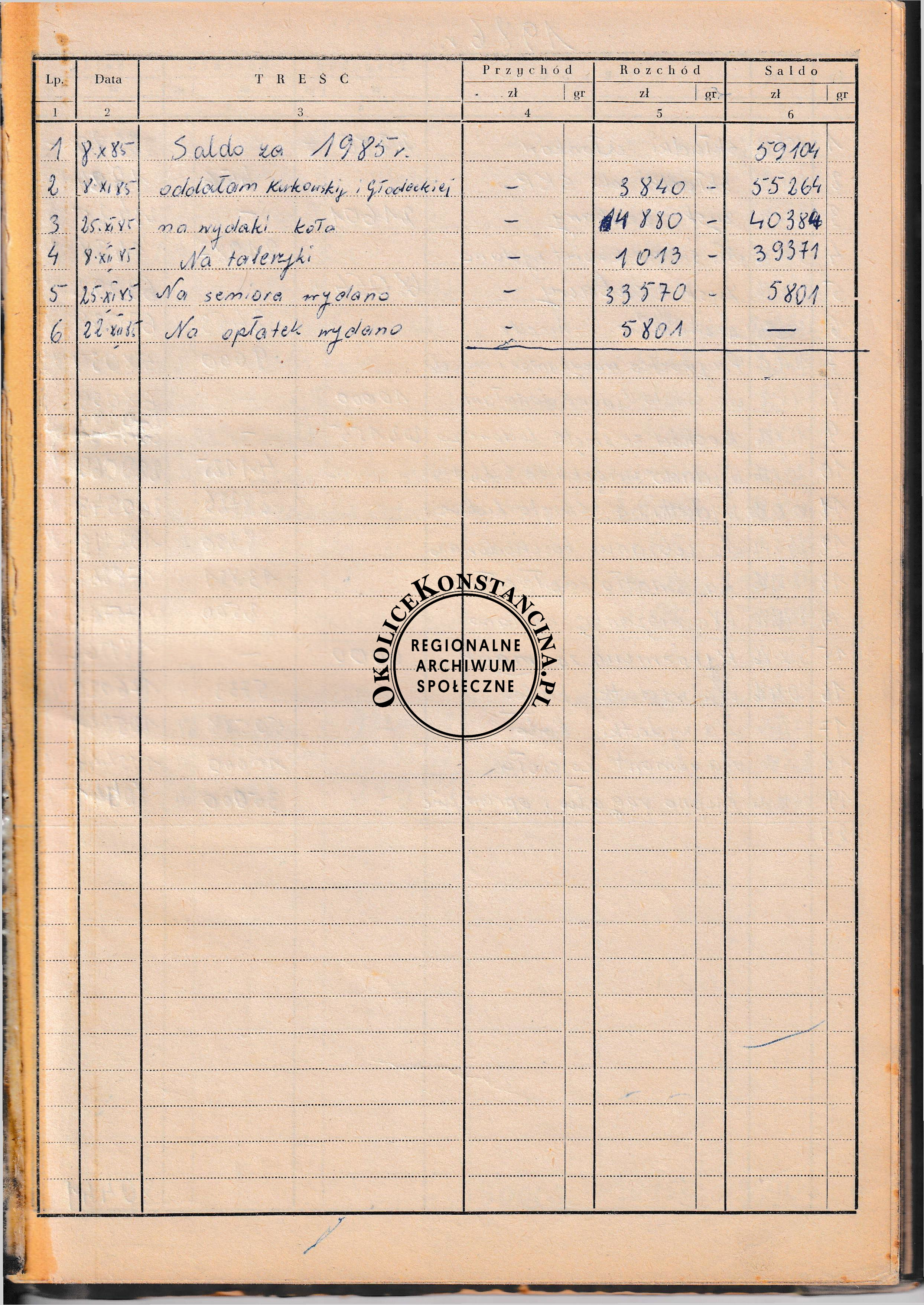 Księga kasowa KGW w Gassach z lat 1964-91. Zb. M. Zarzyckiej.