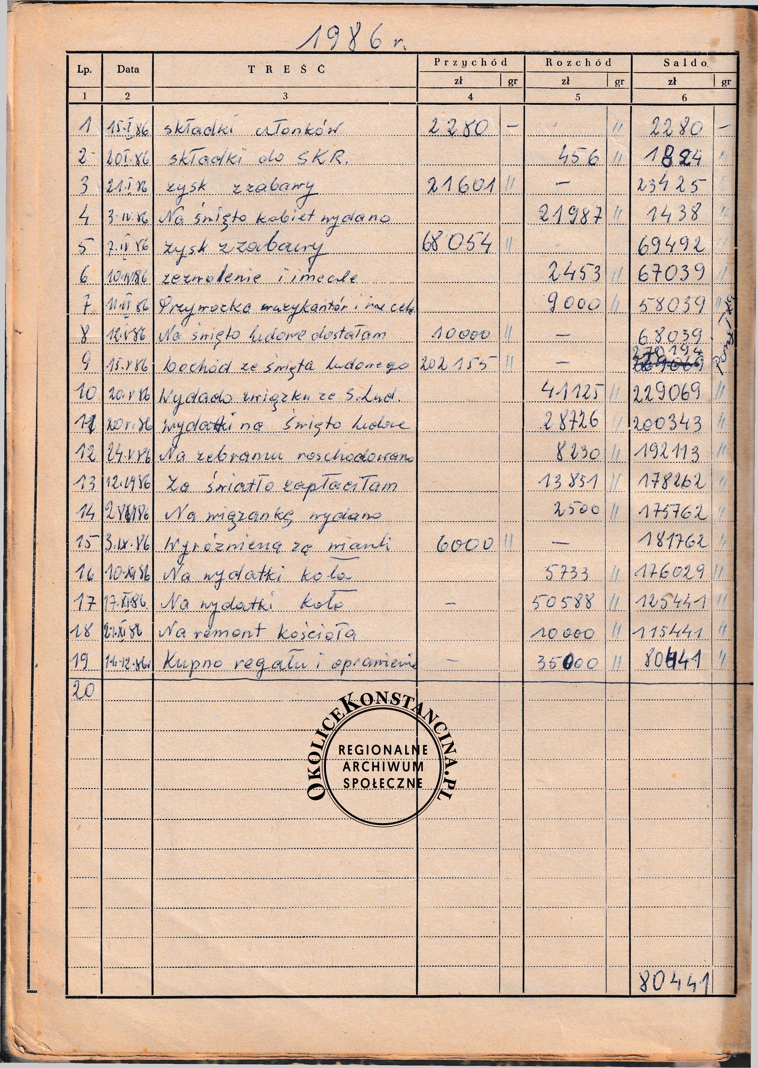Księga kasowa Koła Gospodyń Wiejskich w Gassach zawierająca wpisy z lat 1964-1991 r. jest niezwykle ważnym dokumentem życia codziennego, nie tylko dokumentującym działalność KGW, ale również przemian społecznych w Polsce. Księgę prowadziła skarbniczka Koła. Przez wiele lat była nią, nieżyjąca już Stanisława Kanabus. Warto zapoznać się z dorocznymi wpisami dokumentującymi nie tylko wydatki na zwyczajowe imprezy, ale także działalność społeczną i kulturalną. Oryginał przechowywany jest przez przewodniczącą utworzonego w 2024 r. koła Grymle z Urzecza – Koło Gospodyń i Gospodarzy Wiejskich w Gassach. Skan księgi dostępny poniżej w formie galerii, lub do pobrania jako plik PDF.