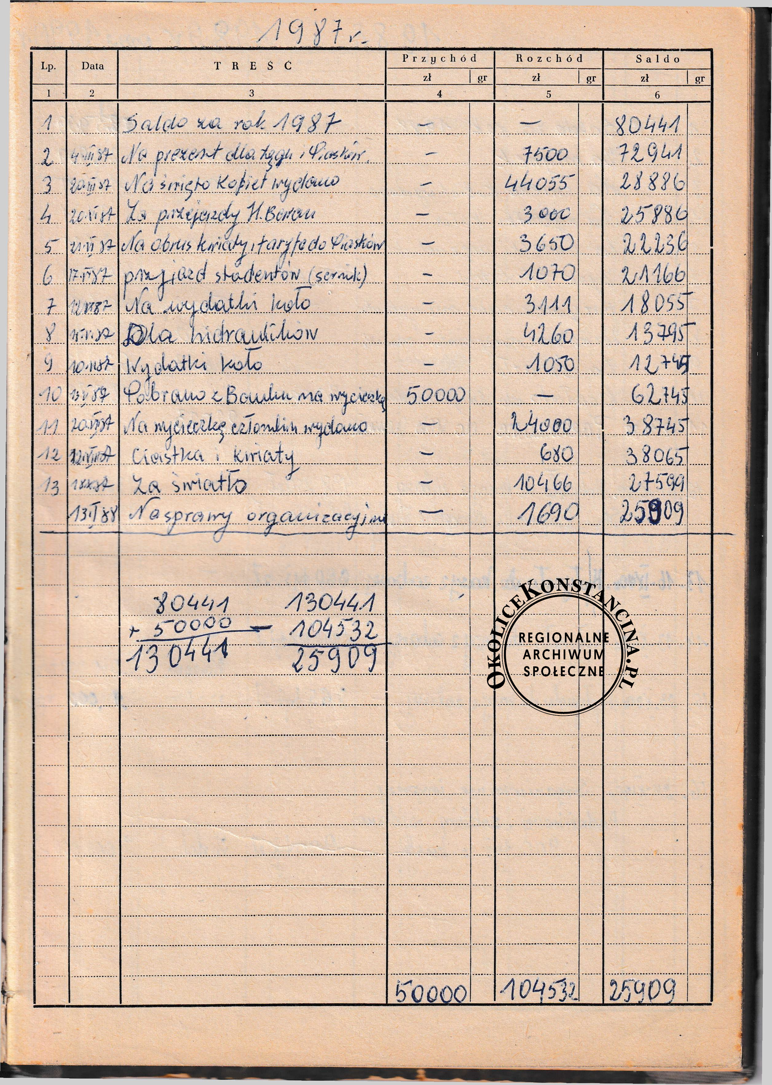 Księga kasowa Koła Gospodyń Wiejskich w Gassach zawierająca wpisy z lat 1964-1991 r. jest niezwykle ważnym dokumentem życia codziennego, nie tylko dokumentującym działalność KGW, ale również przemian społecznych w Polsce. Księgę prowadziła skarbniczka Koła. Przez wiele lat była nią, nieżyjąca już Stanisława Kanabus. Warto zapoznać się z dorocznymi wpisami dokumentującymi nie tylko wydatki na zwyczajowe imprezy, ale także działalność społeczną i kulturalną. Oryginał przechowywany jest przez przewodniczącą utworzonego w 2024 r. koła Grymle z Urzecza – Koło Gospodyń i Gospodarzy Wiejskich w Gassach. Skan księgi dostępny poniżej w formie galerii, lub do pobrania jako plik PDF.