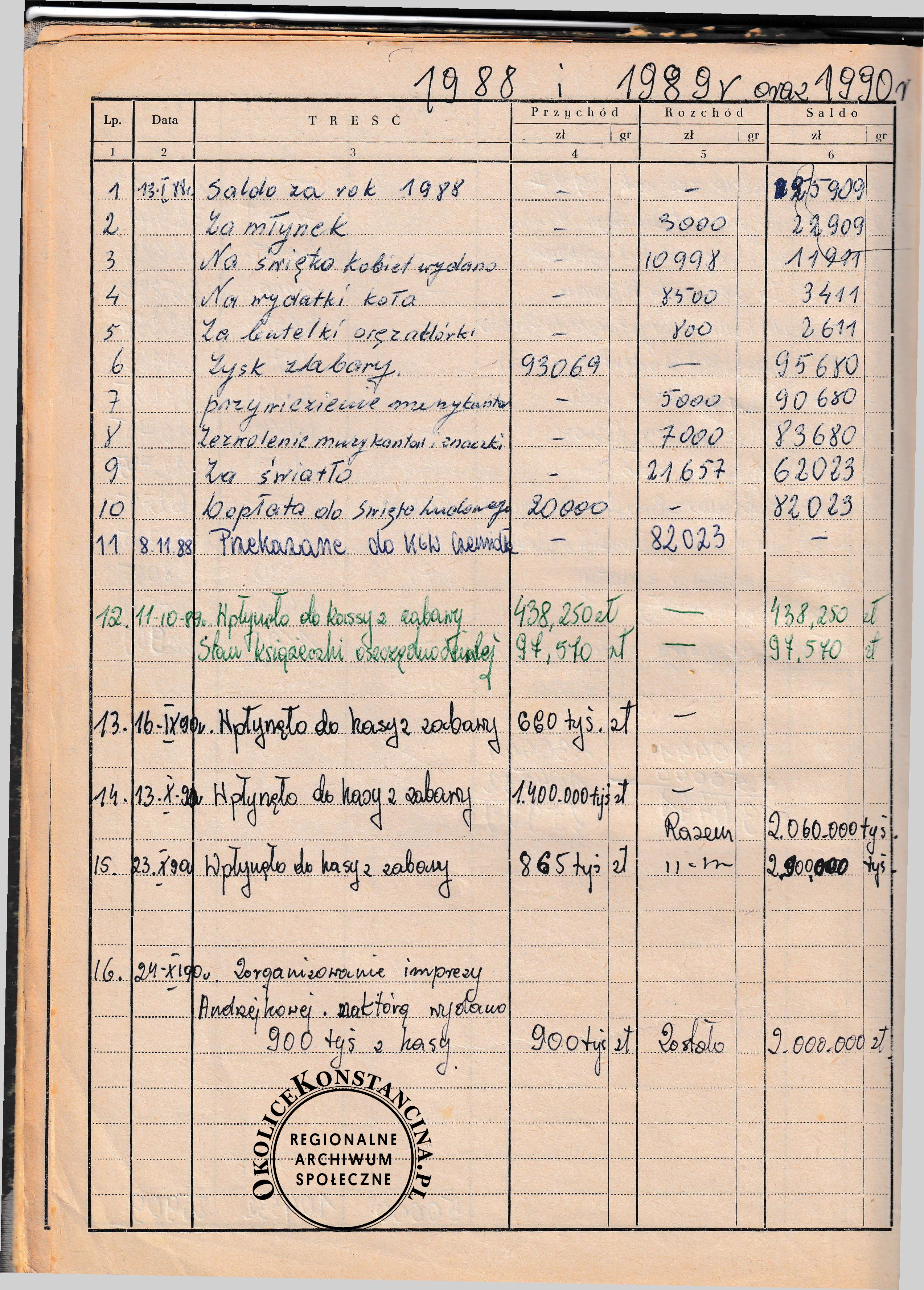 Księga kasowa Koła Gospodyń Wiejskich w Gassach zawierająca wpisy z lat 1964-1991 r. jest niezwykle ważnym dokumentem życia codziennego, nie tylko dokumentującym działalność KGW, ale również przemian społecznych w Polsce. Księgę prowadziła skarbniczka Koła. Przez wiele lat była nią, nieżyjąca już Stanisława Kanabus. Warto zapoznać się z dorocznymi wpisami dokumentującymi nie tylko wydatki na zwyczajowe imprezy, ale także działalność społeczną i kulturalną. Oryginał przechowywany jest przez przewodniczącą utworzonego w 2024 r. koła Grymle z Urzecza – Koło Gospodyń i Gospodarzy Wiejskich w Gassach. Skan księgi dostępny poniżej w formie galerii, lub do pobrania jako plik PDF.