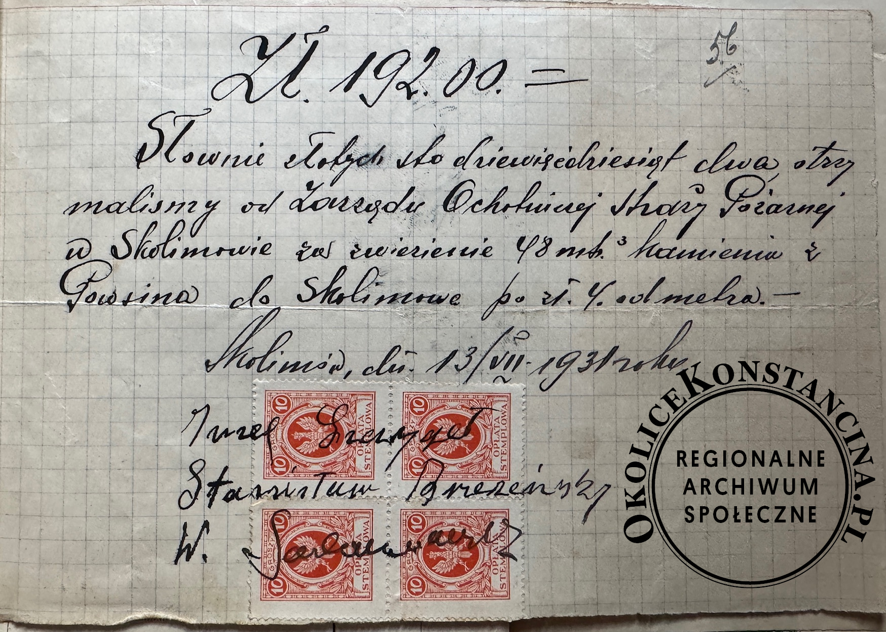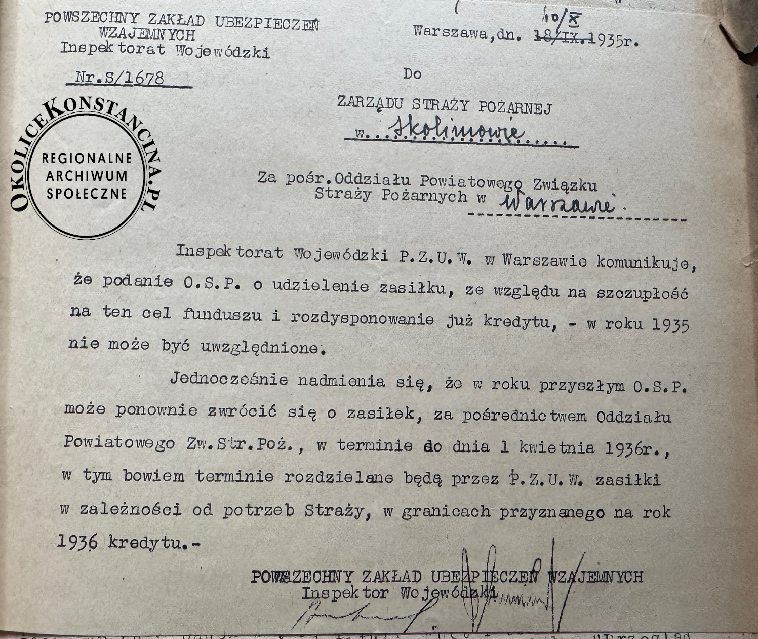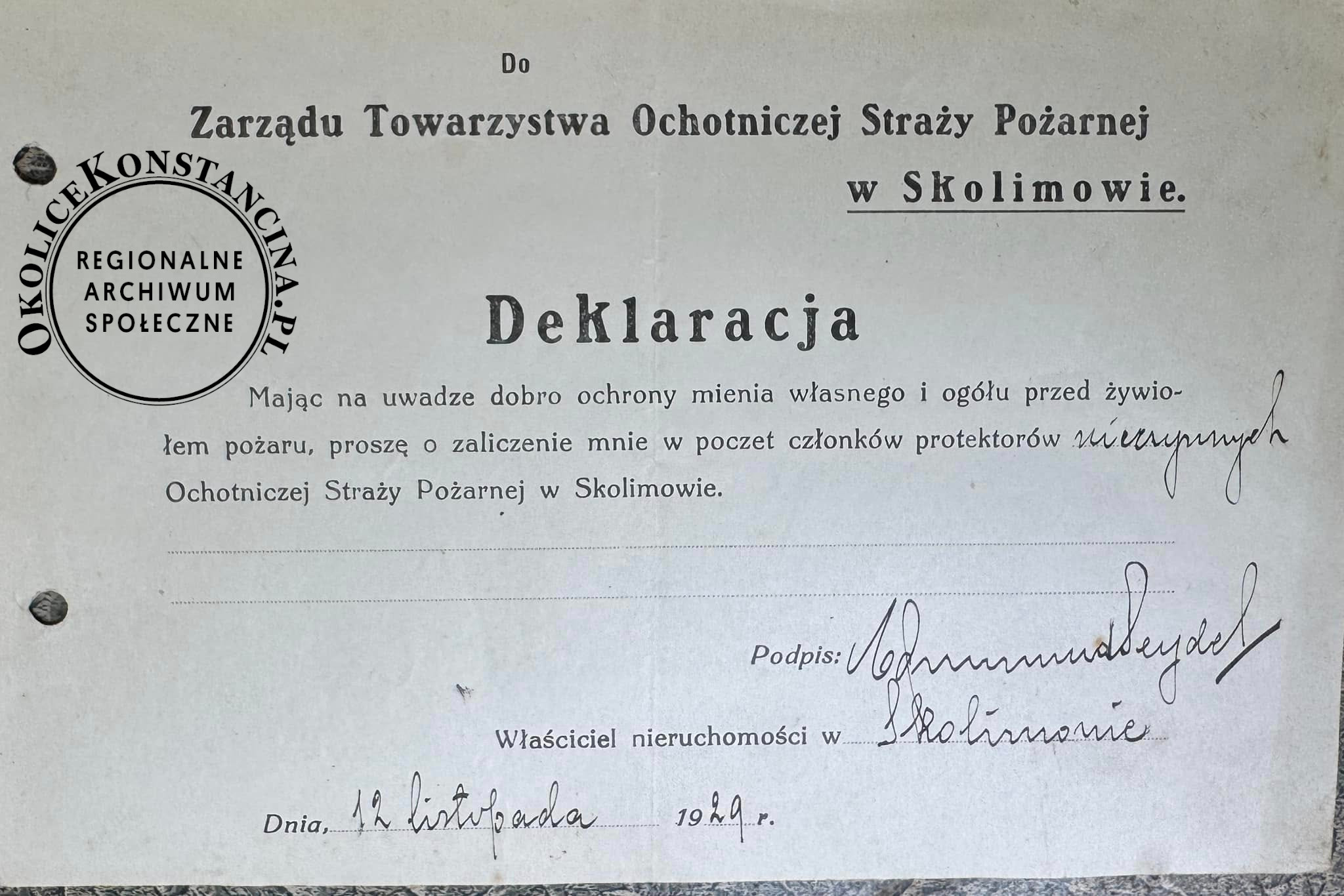 Śledzący nasze profile społecznościowe wiedzą, iż kilka dni temu, tuż przed świętem Straży Pożarnej obchodzonym w dniu 4 maja, odnaleziona została dokumentacja straży pożarnej w Skolimowie, pochodząca z czasów przedwojennych. Podobnie jak inne tego typu akta stanowi zapis codziennego funkcjonowania lokalnej ochotniczej straży pożarnej. Założona w 1917 r. w letnisku Skolimów, szybko swymi działaniami objęła także sąsiadujące willowe letnisko Konstancin, a od 1924 r. stanowiła ochotniczą straż pożarną gminy Skolimów-Konstancin. O jej działaniach i historii można przeczytać w publikacji Witolda Rawskiego wydanej w 1917 r. – poniżej można zapoznać się z nią w wersji elektronicznej, jako że dodana jest w naszym Archiwum do działu ebooki.