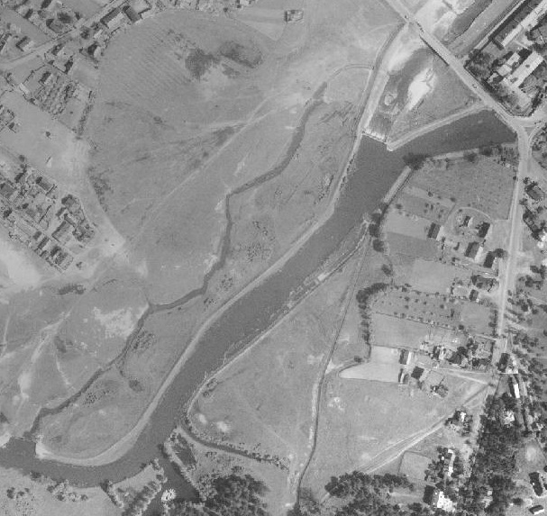 1978, zdjęcie zalewowych terenów w Jeziornie i starego koryta rzeki, gdzie planowano wówczas zalew