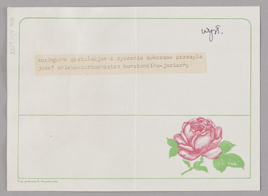W zbiorach Muzeum Warszawy pod nr inw MHW A/V/4177 znajduje się telegram wysłany przez Józefa Hlebowicza do Stanisława Wyganowskiego w dniu 28 czerwca 1990 roku, z okazji wybrania tego drugiego na Prezydenta Miasta Stołecznego Warszawy. Jest to rzecz przepiękna, przenosząca nas w czasy gdy była to najszybsza forma tego typu eleganckiej komunikacji. Dokument jest de facto teleksem (ang. telex od teleprinter exchange). Był to rodzaj sieci telegraficznej, w której wykorzystywano teletypy (specjalne maszyny do pisania połączone liniami telekomunikacyjnymi). Użytkownik pisał tekst na klawiaturze, a urządzenie przesyłało go w formie sygnałów elektrycznych do innego aparatu, który drukował wiadomość na papierze. Jak widać wydruk nalepiono na elegancki papier i dostarczono do adresata. Teleks działał od pierwszej połowy XX wieku do lat 80.–90. XX wieku, zanim został wyparty przez fax, później internet i wiadomości tekstowe, czy media społecznościowe.
