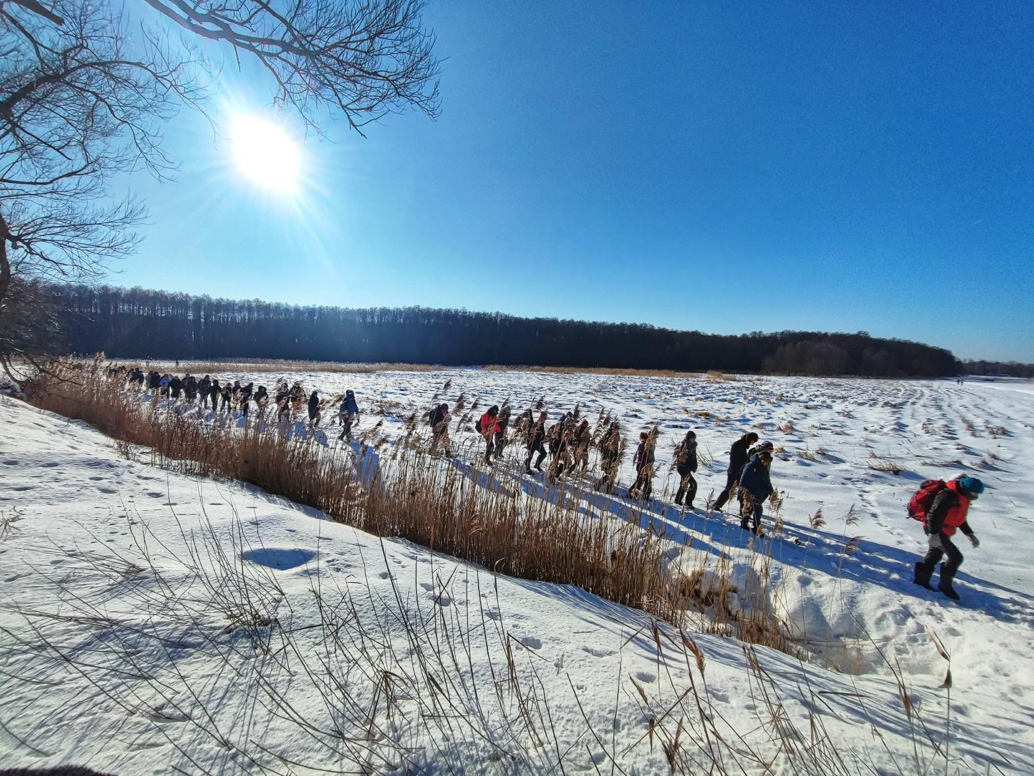 Mimo -12 stopni w spacerze udział wzięło około 100 osób. Spacer prowadzili Daniel Petryczkiewicz – przyrodnik, dziennikarz, fotograf, mieszkaniec okolic Konstancina, dr Dorota Giriat – geomorfolożka z Wydziału Geografii i Studiów Regionalnych Uniwersytetu Warszawskiego, zaangażowana w badania Łąk Oborskich, mieszkanka Konstancina, dr hab. Wiktor Kotowski – biolog z Centrum Ochrony Mokradeł i Wydziały Biologii UW, pomysłodawca parku bagiennego, a o historii łąk, Urzeczu i olędrach opowiedział Paweł Komosa. Jak widać na otwierającym niniejsze podsumowanie zdjęciu, podczas spaceru mimo mrozu zebranym dopisała pogoda.